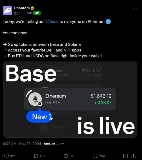 But I posit that many of these things are coming or very close to coming for Base. For starters, just today Phantom announced support for Base: