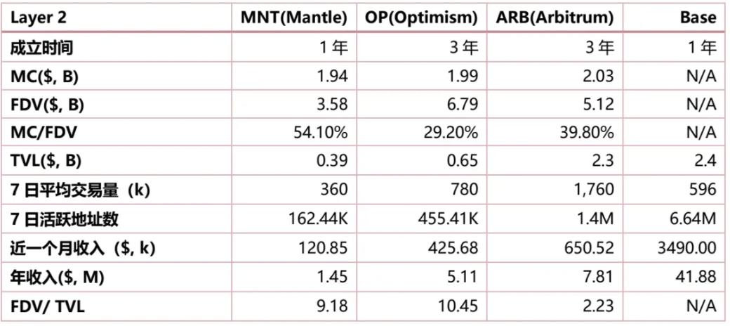 In terms of TVL, the top three are Arbitrum, Base, and Optimism, which have accounted for more than 73% of the market share. Mantle came from behind and became the fourth largest Layer 2 one year after its launch.