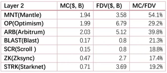 In terms of FDV, Mantle ranks second only to Optimism and Arbitrum with $3.58 billion. In terms of MC/FDV, Mantle ranks first with 54.1%, which proves that MNT will face less selling pressure in the future.
