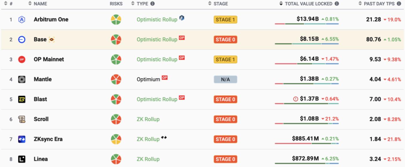 L2 TVL ranking, source: L2 beat, 2024/10/31