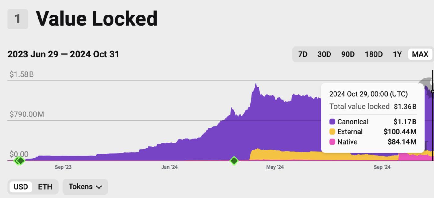 Mantle’s TVL, source: l2 beat, 2024/10/31