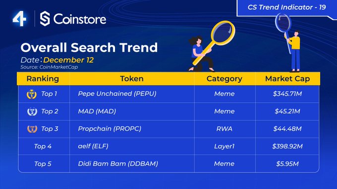 🔥 Trending Tokens of the Day 🔥 📅 Date: December 12 Explore the most-searched tokens across the crypto space! Stay updated on what’s buzzing and spot your next opportunity with Coinstore. 🚀 👉 Don’t miss out—check out the full list now!