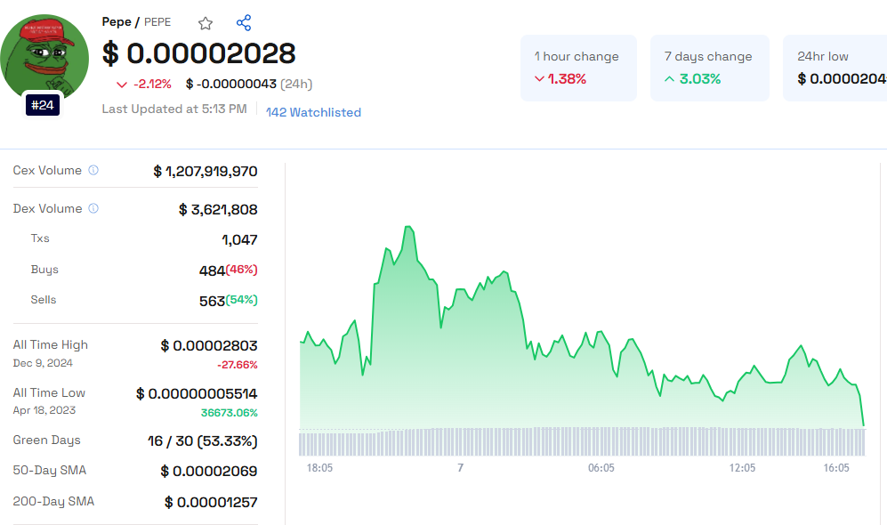 As of January 2, 2025, here’s a snapshot of Pepe’s market position: