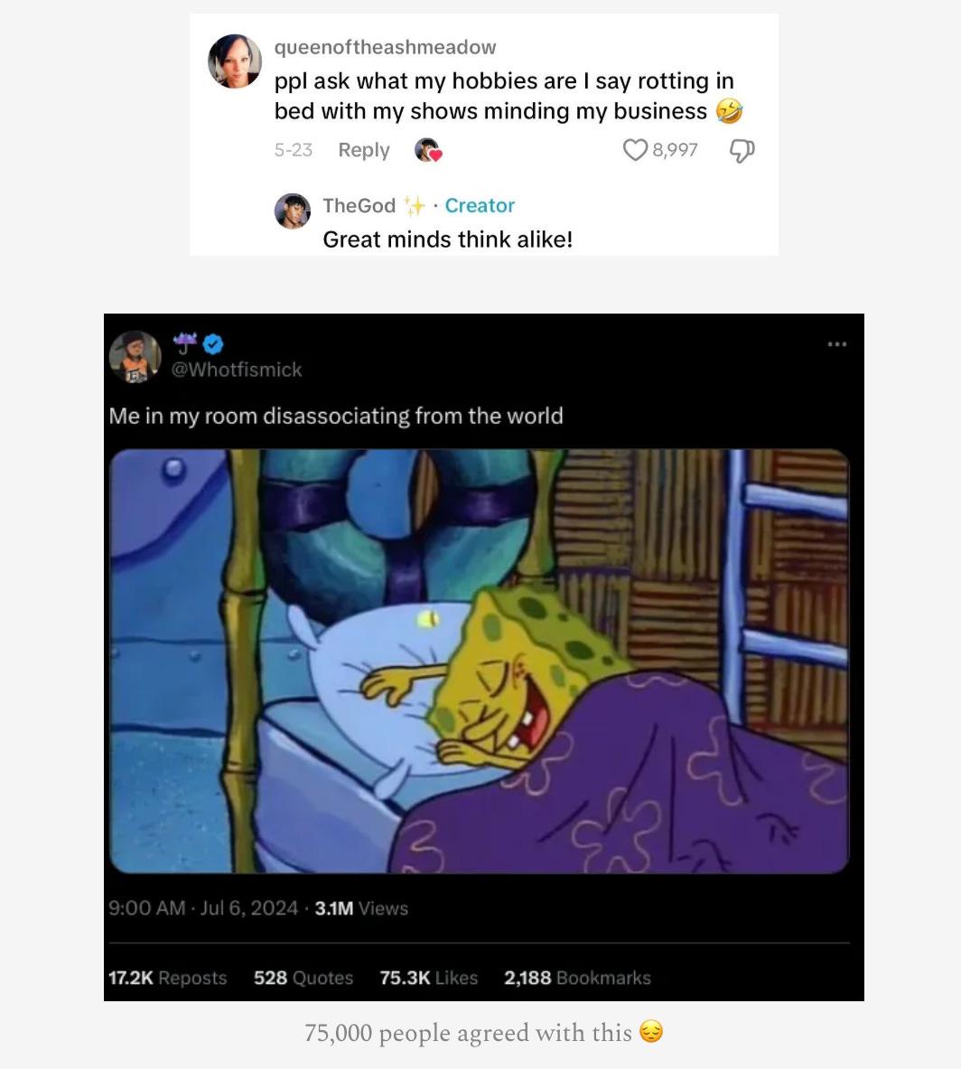 It’s very difficult to gain an audience or consistent following on the internet, and it’s far easier to just lurk - but there’s still a desire to communicate with others or insert yourself into conversation, even if it only manifests in tiktok comment sections.