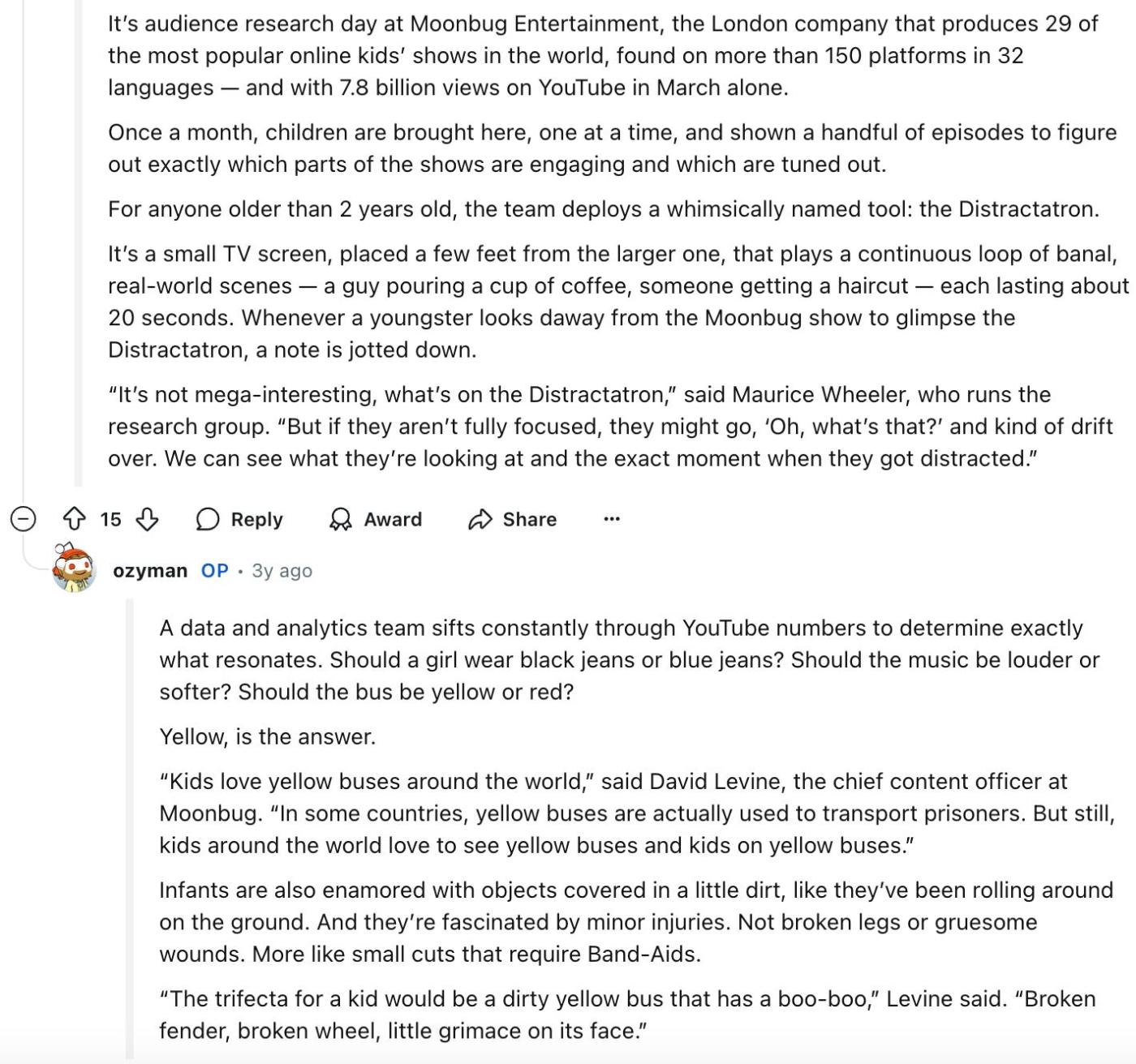 Here’s a summary taken from Reddit, describing the usage of a tool referred to as “The Distractatron” that directly influences the creation of shows like Cocomelon: