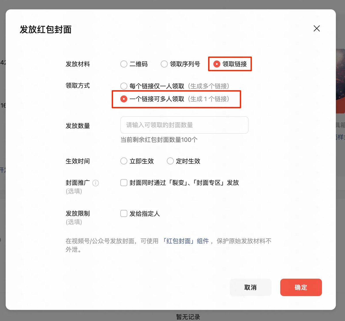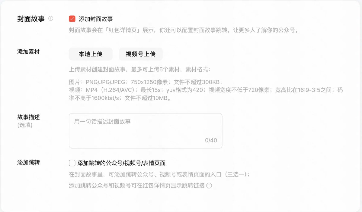 Finally, there is the cover story. After uploading the cover story, it will start to display when you pull down to receive the red envelope. The materials here will be displayed. If you don’t have any promotional needs, you can unselect it.