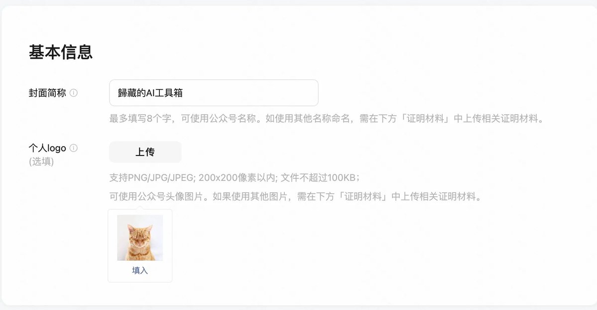 When customizing the cover, we need to fill in some information. It is recommended to write the name of your public account as the basic information. If it is another name, you need to upload supporting materials.