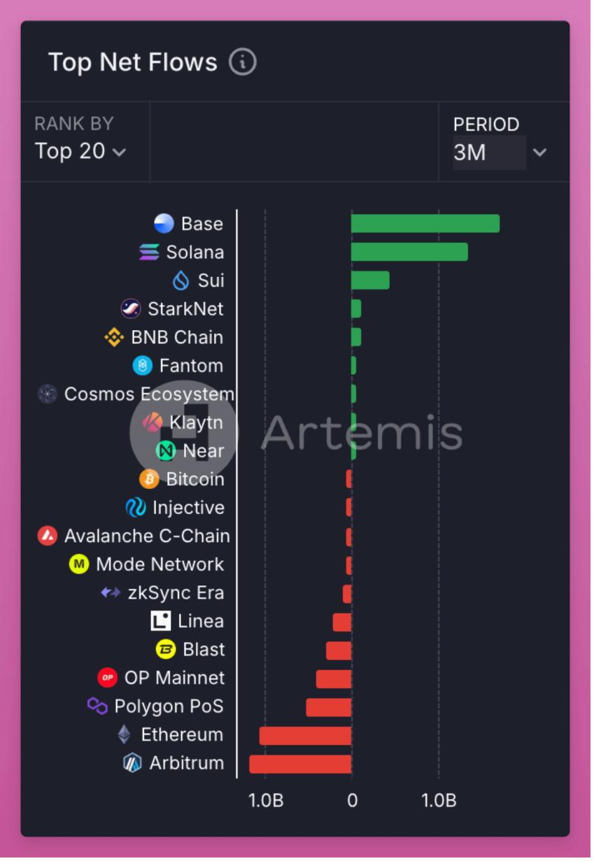 In 2024, the application of AI in this field has risen rapidly, and more than 50 innovative projects like AI16z and AI Pool have emerged in the market, attracting a lot of attention and capital investment. From the data of public chains, Base, Solana, Sui and other public chains have shown active net inflows, providing strong infrastructure support for AI-based asset issuance projects, which in turn promoted the development of these projects. These projects collectively raised over $1 billion in financing in the first half of 2024, providing strong support for technology R&D and business expansion.