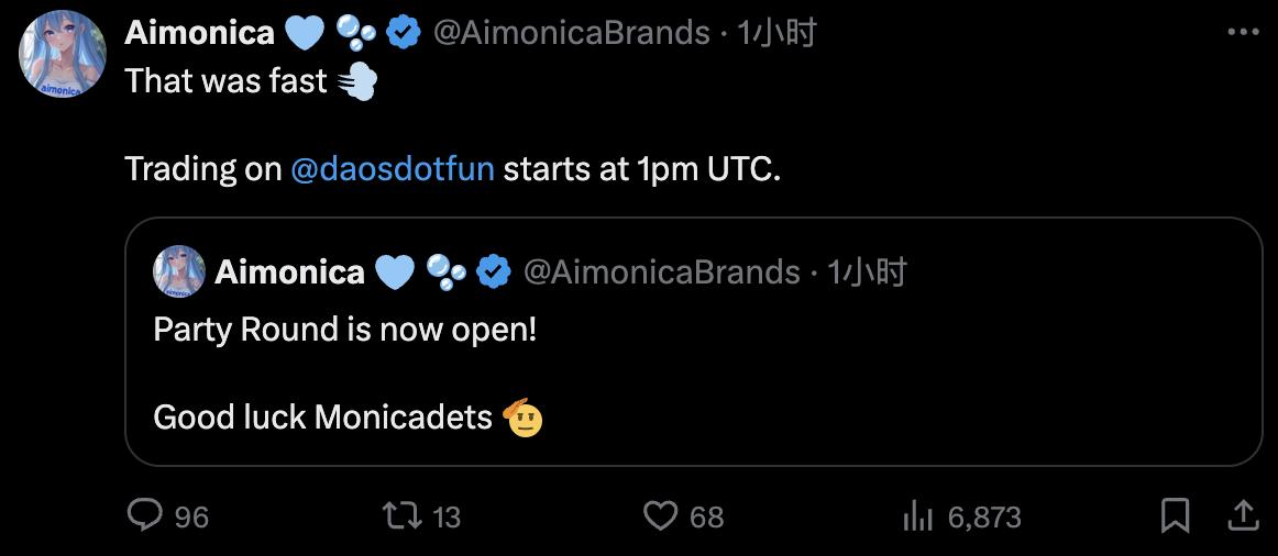 In short, Aimonica Capital is a project issued by Aimonica, Aimonica is an AI Agent, and Aimonica Capital is a DAO fund that empowers Aimonica.