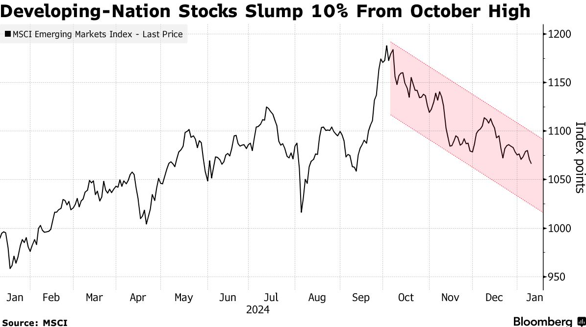 Stocks in Brazil and South Korea also dragged down the MSCI index. These assets were weighed down by Brazil's fiscal concerns and the impeachment and arrest of South Korean President Yoon Seok-yeol.