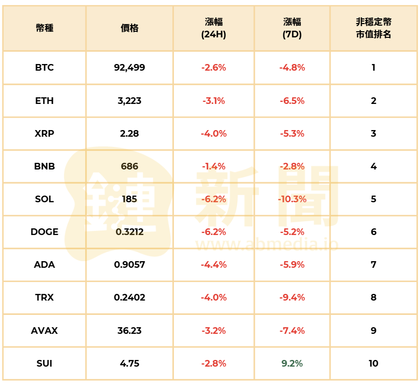 BTC continues to be under pressure, and although it tried to return above $94K yesterday, it ultimately failed to withstand the pessimistic pressure of market uncertainty, closing at $92,499 before the deadline, a 24-hour decline of 2.6%.