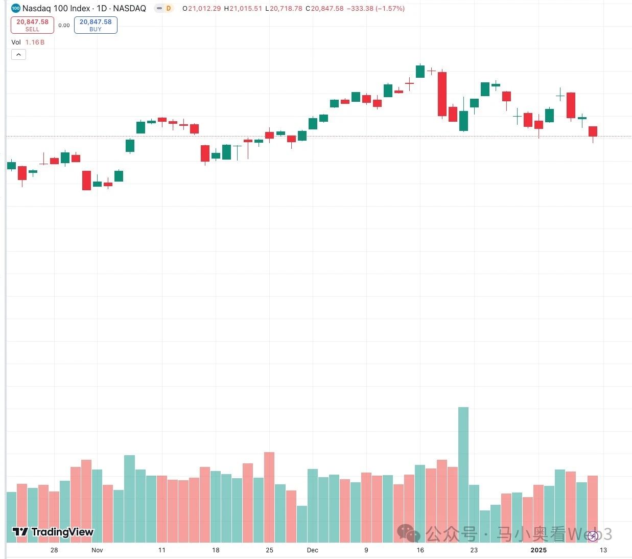 Abstract <br>This week, the cryptocurrency market experienced a relatively large shock, and the price trend also went out of the M head pattern. All these indicate that as Trump's official inauguration on January 20 is getting closer, the capital market has quietly begun to price in the opportunities and risks after his election, which means that the opening ceremony of the "Trump market" driven by emotions, which has lasted for 3 months, has officially ended. So what we need to do now is to extract the focus of the short-term market game from a lot of messy information, so that it is conducive to making rational judgments on market changes. Therefore, in this article, the author still talks about his own observation logic from the perspective of a non-financial enthusiast, hoping to help everyone. In general, the author believes that the prices of many high-growth risky assets, including the crypto market, will continue to be suppressed in the short term. The reason is that the U.S. Treasury market has been adversely affected by the amplification of the term premium and the rise of medium and long-term interest rates. The reason for this situation is that the market is pricing the U.S. debt crisis.