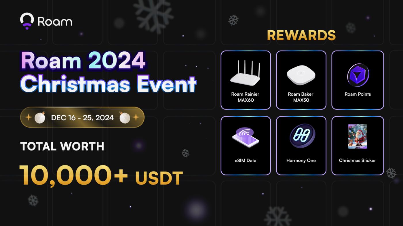 To celebrate the holiday season, Roam hosted a Christmas special event in the Roam APP from December 16 to 25, 2024. The event offered rewards worth over 10,000 USDT, including Roam miners, Roam Points, eSIM data, and tokens.