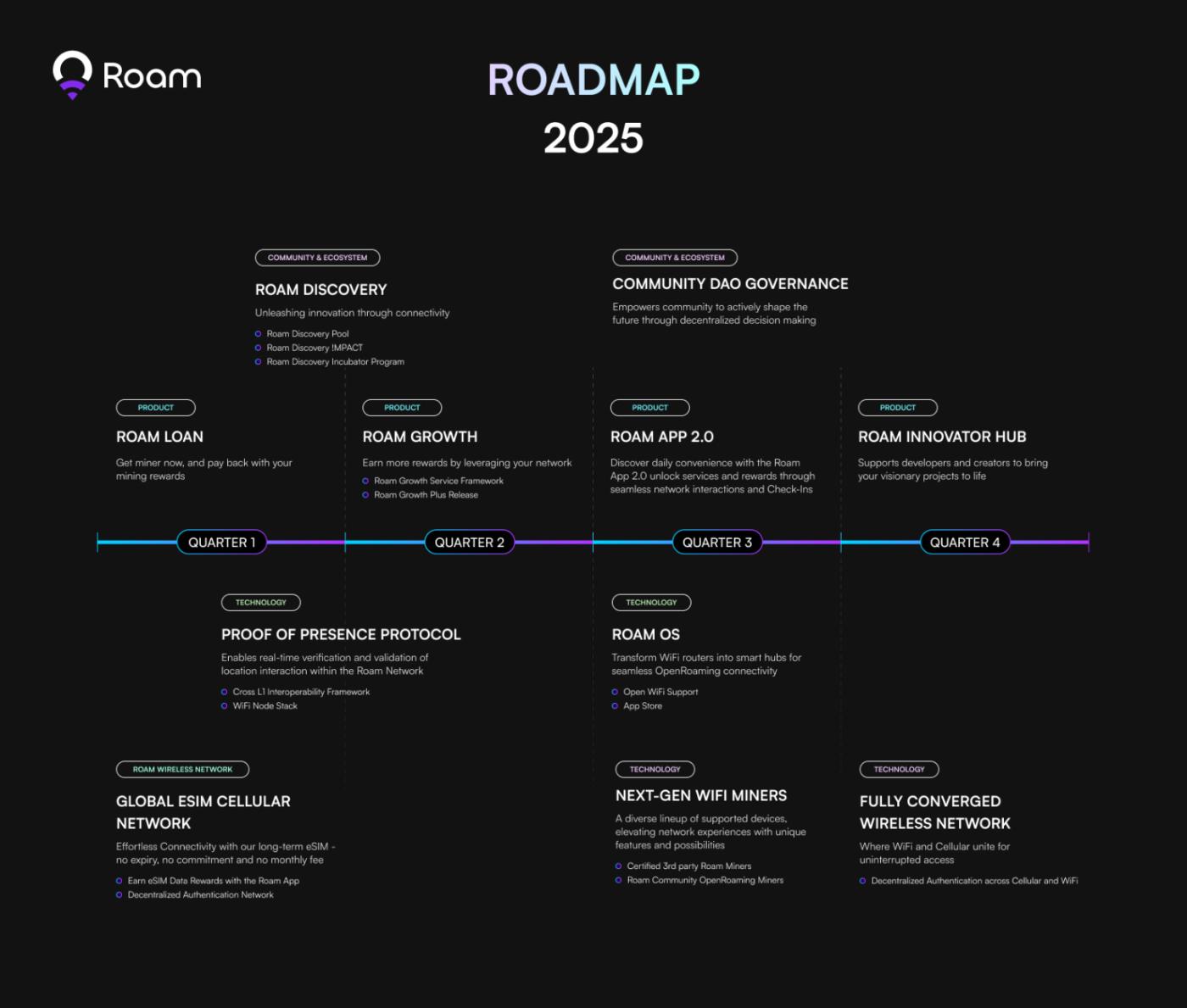 On the technology front, Roam will focus on developing the "Proof of Presence" protocol to enable real-time local interaction verification within the network. Furthermore, by the end of 2025, Roam plans to fully integrate WiFi and cellular data networks, significantly enhancing the user connection experience.