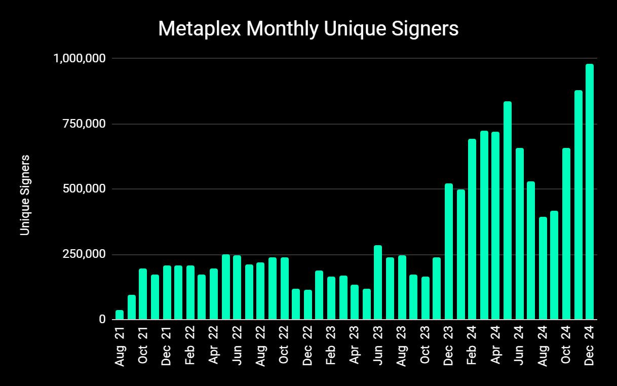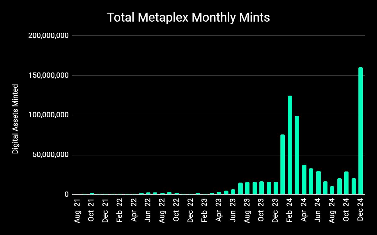 In December, Metaplex Core's cumulative digital asset mints surpassed 1.5 million, further solidifying its leading position in NFT creation on Solana and SVM.
