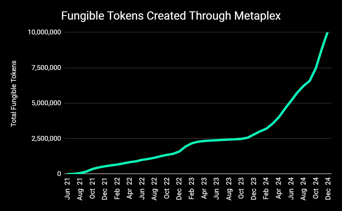 - Fungible Tokens: Over 10 million Fungible Tokens have been minted through Metaplex, with 1.3 million minted in December, the second-highest month on record.