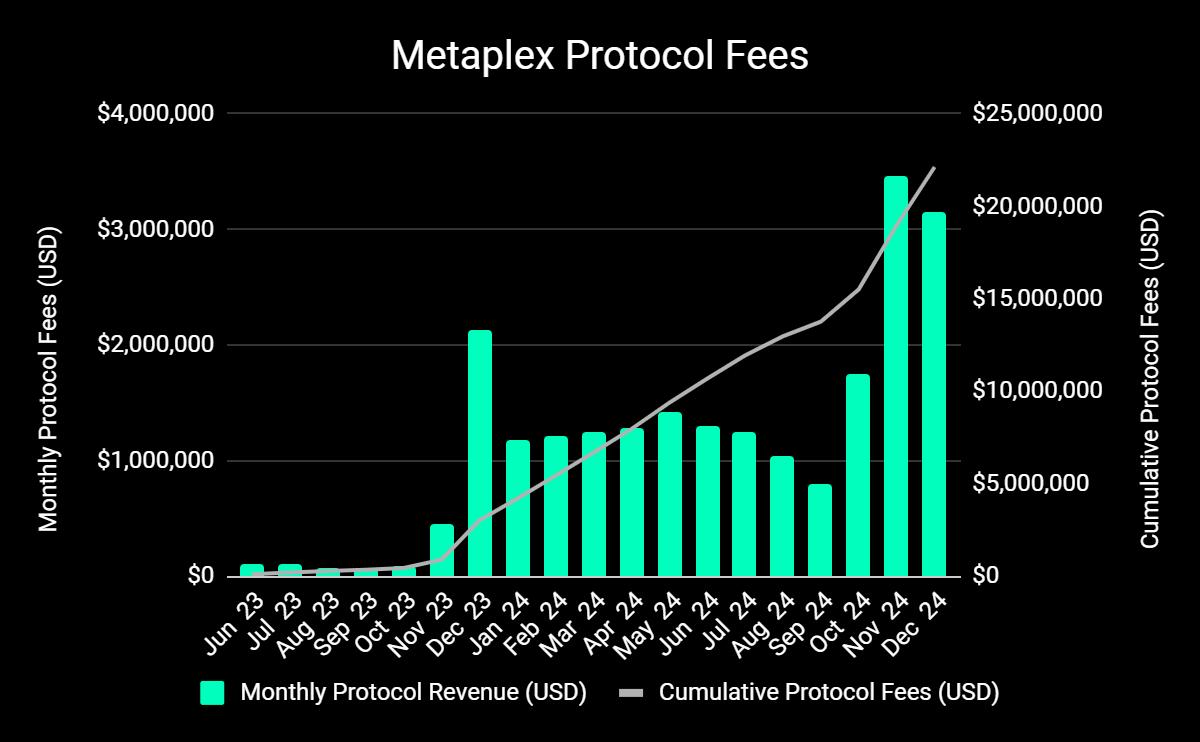Foresight News: In December, Metaplex protocol fees soared to a record high of $3.1 million due to a surge in meme coin and AI token activities. Metaplex DAO spent $8.3 million to buy back MPLX tokens, demonstrating strong confidence and positioning for the future. Let's now dive into the highlights of this month.