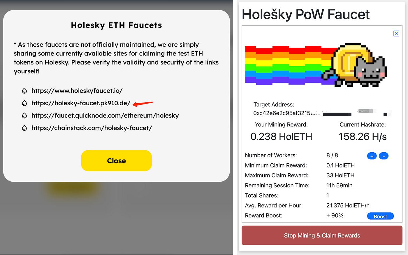 - Claim Holesky ETH, you can use the second link on the official website, the mining is fast. However, you need an ENS, if you don't have one, you can register at https://app.ens.domains/
