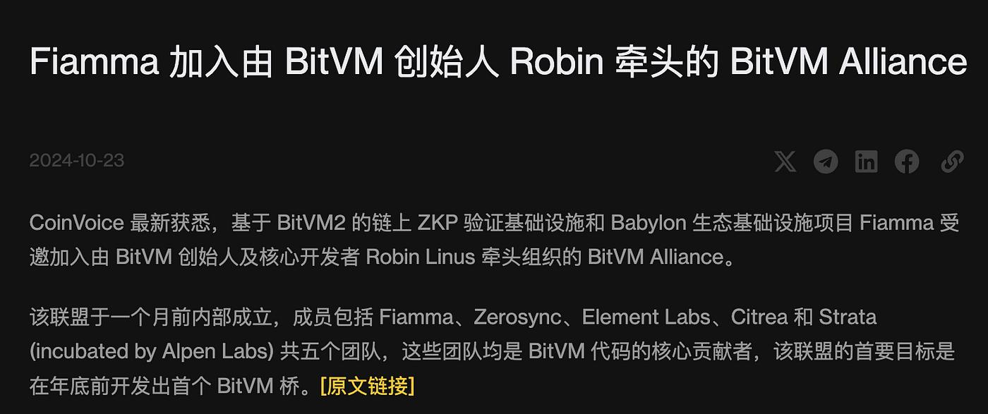 In terms of development progress, Fiamma is currently the one that has been able to implement the BitVM solution.