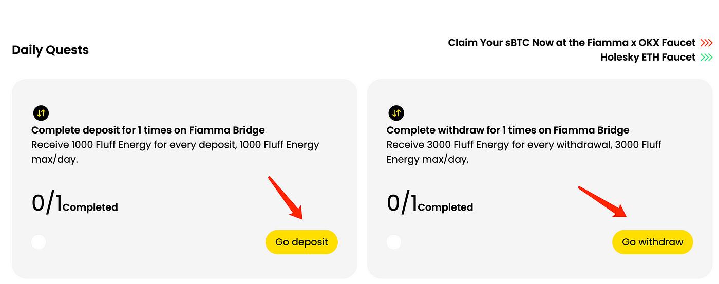- Complete 1 deposit on the Fiamma Bridge (1000 Fluff Energy per day)