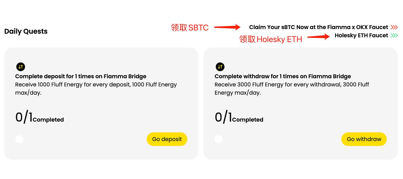 - The official website also has channels to claim Holesky ETH and SBTC, as shown below: