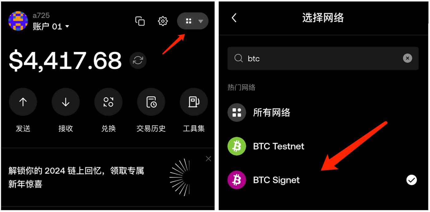 The address in the above image corresponds to the BTC Signet in the OKX wallet. After switching, you can see that the sBTC has arrived: