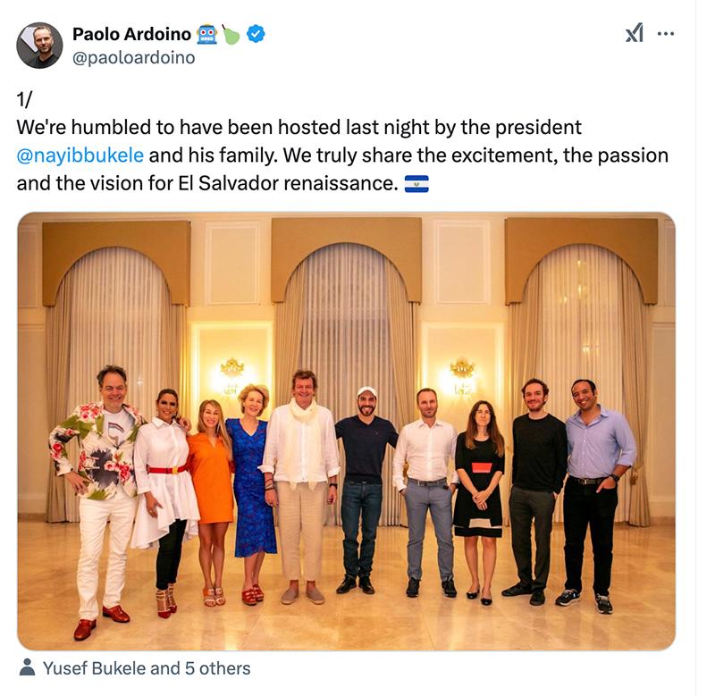 Furthermore, the frequent meetings and exchanges between Ardoino and President Nayib Bukele, along with Ardoino's social media messages supporting El Salvador's investment-attracting policies, demonstrate the strong cooperative relationship between the two parties.