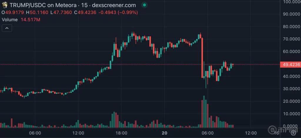 The meme coins launched by Trump and Melania Trump have also become a market focus in recent times. The $TRUMP meme coin has soared to $75 since its launch, and then retreated to $49, experiencing violent price swings. The market's rapid response may be related to the political factors brought about by Trump's inauguration, especially whether he will issue crypto-friendly policies, causing investors' sentiment to fluctuate wildly.