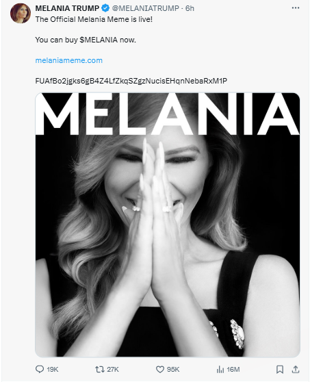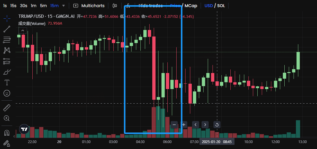 Trump was inaugurated today, and there have been a lot of recent operations 🤔 On January 18, the #TRUMP #MEME started trading at an opening price of $0.1824, and within 12 hours it surged over 15000% to around $30, reaching an all-time high of $75.35 (a cumulative gain of over 41200%) since its launch. In the early hours of January 20, US First Lady Melania Trump officially announced the launch of her own eponymous meme coin #MELANIA. ... <x.com/i/web/status/18812229518...>