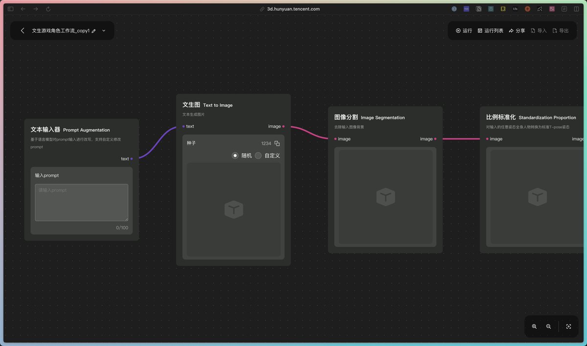For example, the built-in Wensheng character workflow starts from inputting prompt words to generating pictures, then segmenting, and then standardizing the proportions. You can control every step.