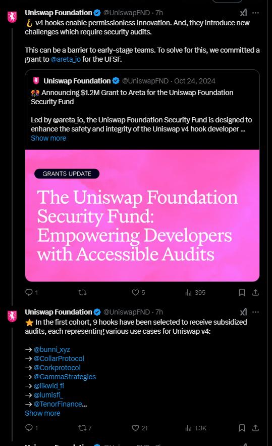 The UNISWAP Foundation has recently provided a total of $1.2 million in Grants to 9 projects, which were interviewed and screened by their investment bank Areta (which helped UNISWAP acquire Genie and Sudoswap at a high price). The use of these Grants includes two aspects: