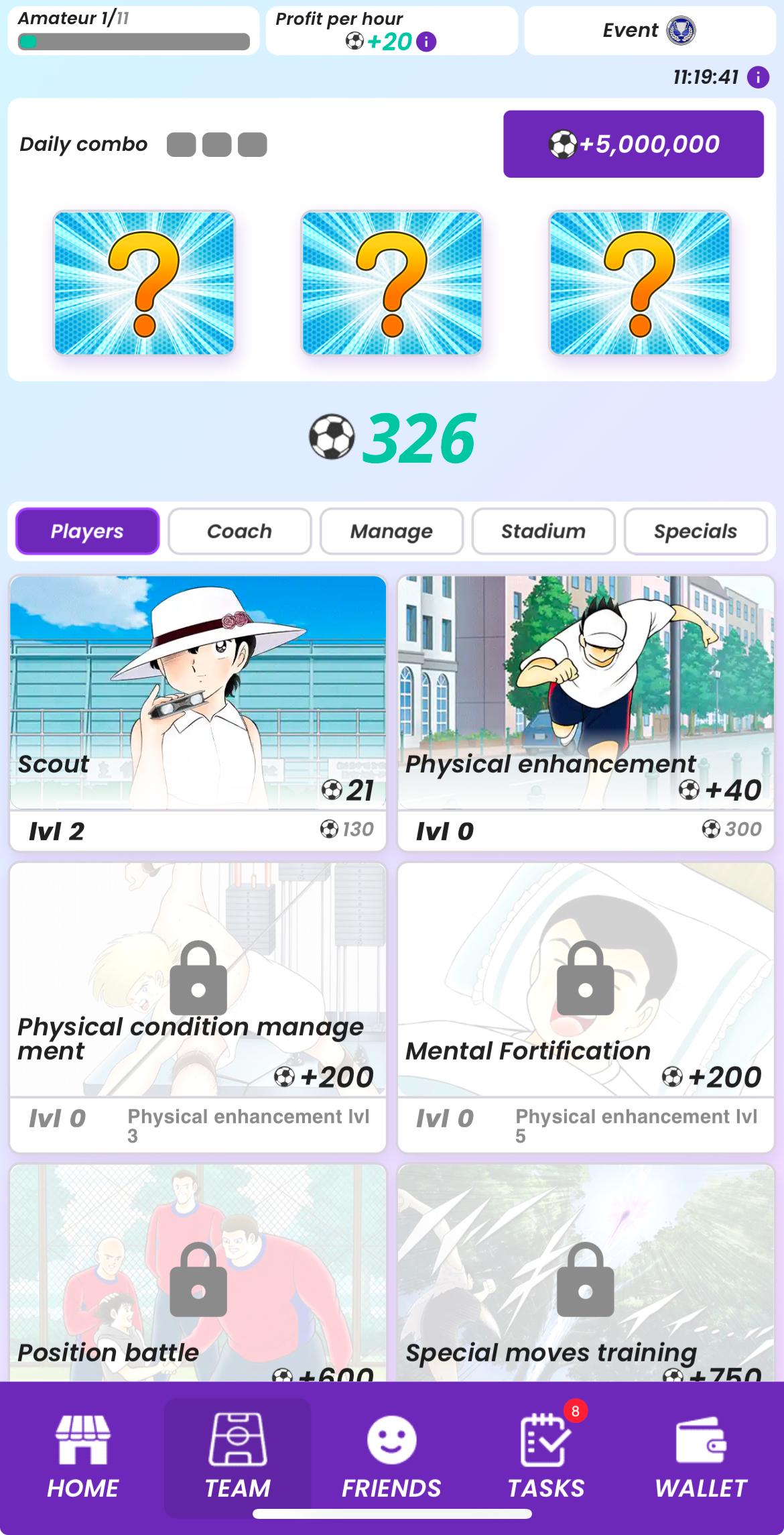 Captain Tsubasa -RIVALS- on LINE is a game based on the popular soccer manga "Captain Tsubasa"; the gameplay combines soccer manager and Tap-Tap, with the core revolving around a thing called "soccer coins": players can continuously click on the soccer player Tsubasa image on the game homepage to earn soccer coins, and can also earn a large number of soccer coins through daily tasks and winning streaks. Meanwhile, on another manager page, players can upgrade passive benefits through tasks such as recruitment, training, coach assignment, and stadium upgrades, so that they can earn soccer coins even without clicking the screen.