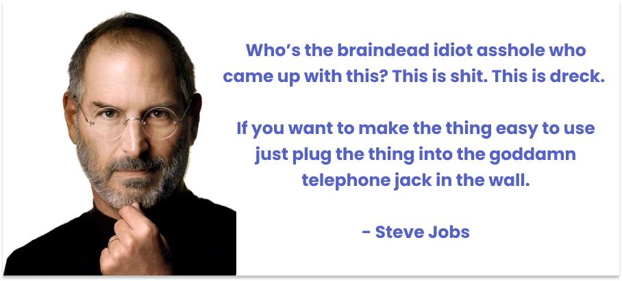 “Who’s the braindead idiot asshole who came up with this?” he asked. “This is shit. This is dreck. If you want to make the thing easy to use just plug the thing into the goddamn telephone jack in the wall.”