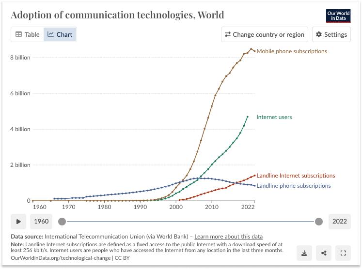 The network of networks that moves packets is brain-breakingly complex. We traced just one path, but our packet could have been beamed up to a Starlink satellite and back down to your phone, or over a series of cell towers and to your phone, or through our ISP’s wires and straight to your computer, if you happen to be on the same ISP as me. Increasingly, internet traffic isn’t humans talking to humans, but machines talking to machines.
