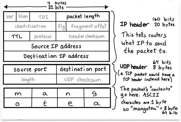 So that is how the idea for packets was born and grew. But our packet is not quite a real packet yet. It needs its IP header.