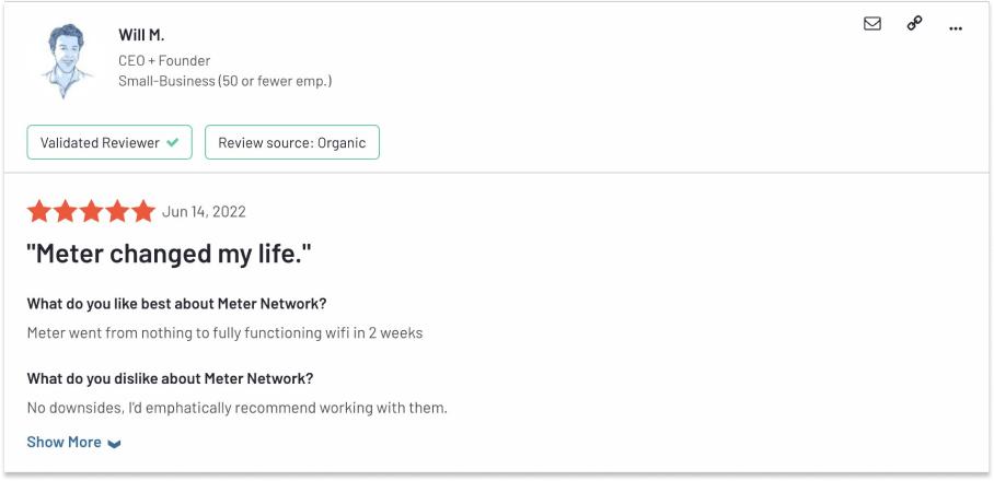 I even found a three-year-old Will Manidis cameo when trekking through the G2 comments. Among the other 22/22 5-star reviews, he wrote: “Meter changed my life.”