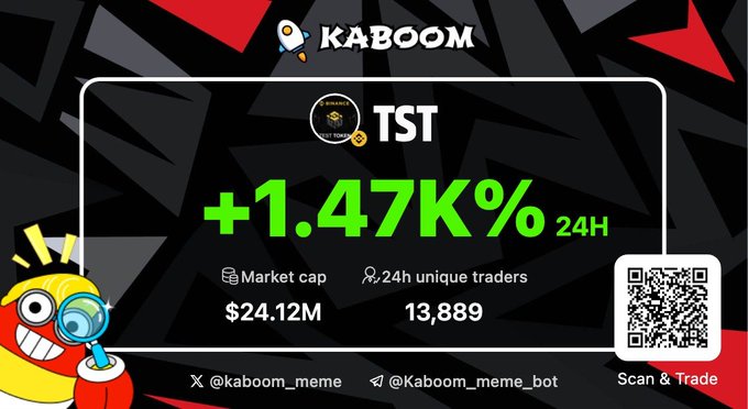 BNB Chain meme $TST reached $50m Market Cap yesterday, and now at $24.12m. Do you think $TST will be THE meme to kick off the market hype for the chain? Check more BSC memes at kaboom! http:/app.kaboom.meme