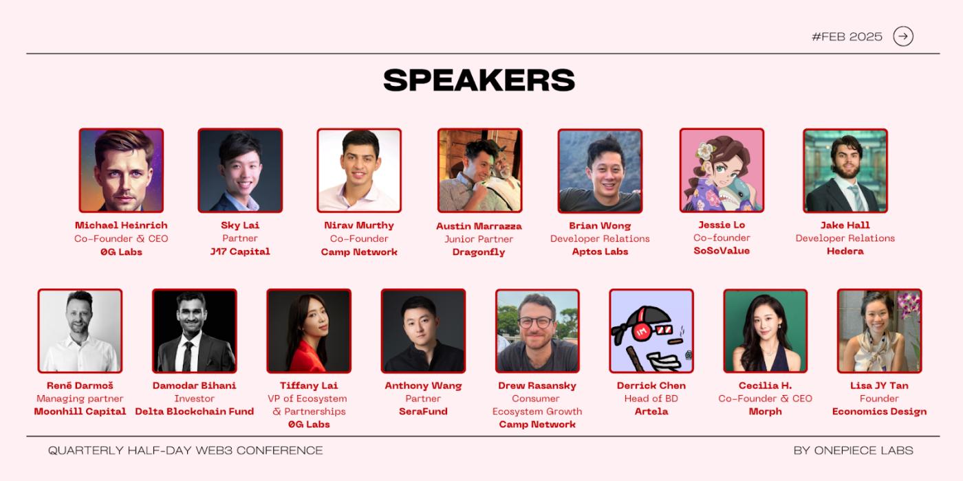 OnePieceCon (OPC) is a high-end half-day conference and social event hosted by OnePiece Labs, bringing together top talents in the Web3 space. This event will focus on Artificial Intelligence (AI), ConsumerFi and the next wave of decentralized innovation. OPC provides a premium stage for industry leaders, investors and entrepreneurs to engage in in-depth discussions and collaborations through keynote speeches, project showcases and high-value networking.