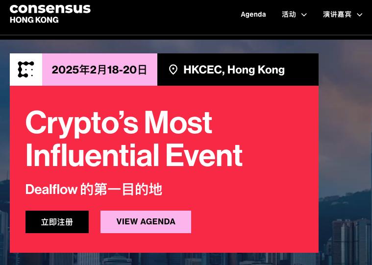 In 2025, Consensus is expanding beyond North America and officially landing in Hong Kong! This event will feature high-profile industry forums, product launches, and extensive business networking opportunities. As Crypto, Decentralized Finance (DeFi), and AI-powered blockchain technology gain global attention, the 2025 Consensus Hong Kong conference will be an important window to grasp the future trends of digital finance.