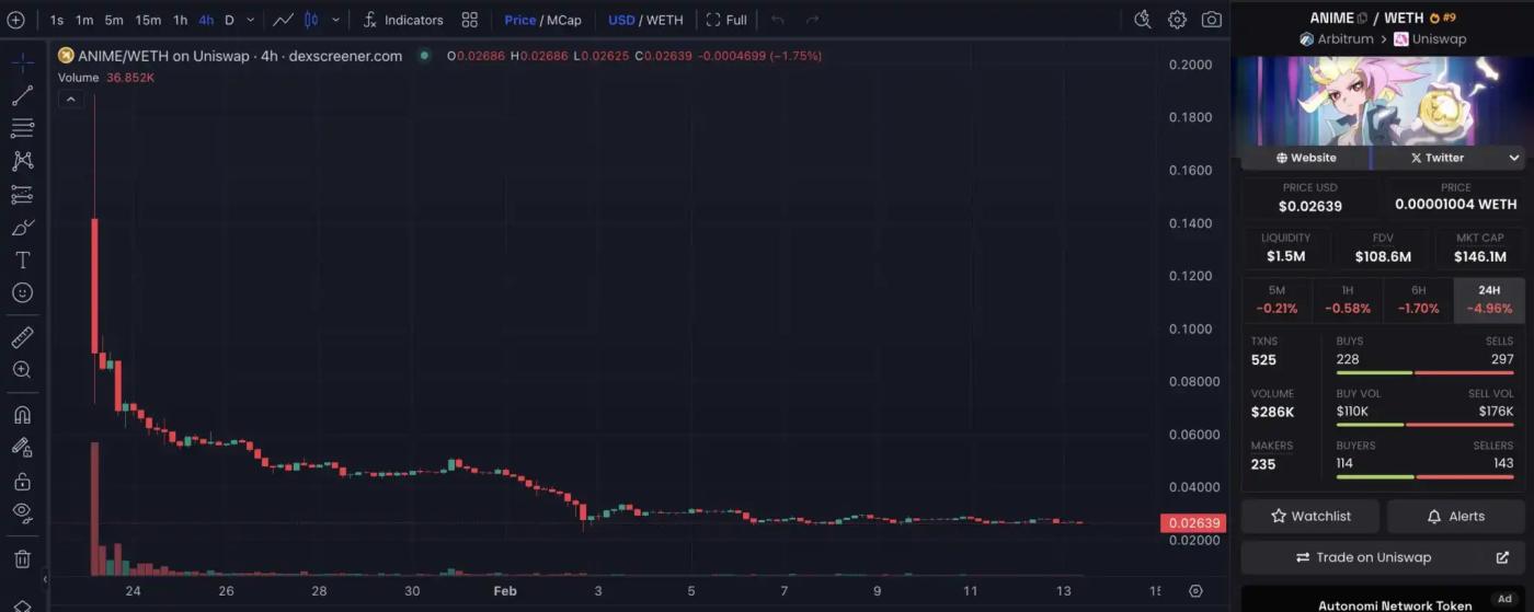 However, this does not mean that profits are guaranteed. For example, the FDV of $PENGU at the time of launch once exceeded $6 billion, but has now fallen to only about $800 million; $ANIME has also fallen from $1.4 billion to the current $270 million, both of which have fallen by more than 80% from their highs. Therefore, the market performance of DOOD after launch is still full of uncertainty, and buying Doodles now does not necessarily guarantee a profit.