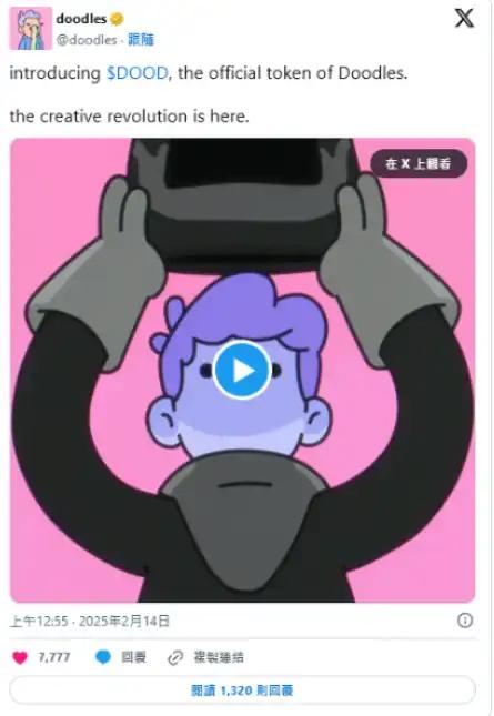 After well-known projects like Pudgy Penguins and Azuki launched their tokens, another Ethereum blue-chip NFT project has announced the launch of its token! Doodles, the 6th largest NFT project by Ethereum market cap, known for its animations, short films, and collaborations with famous brands like McDonald's, announced in the early hours of today (14th) that it will issue the $DOOD token on Solana, becoming another Ethereum project to choose Solana as its token launch platform after Pudgy Penguins.