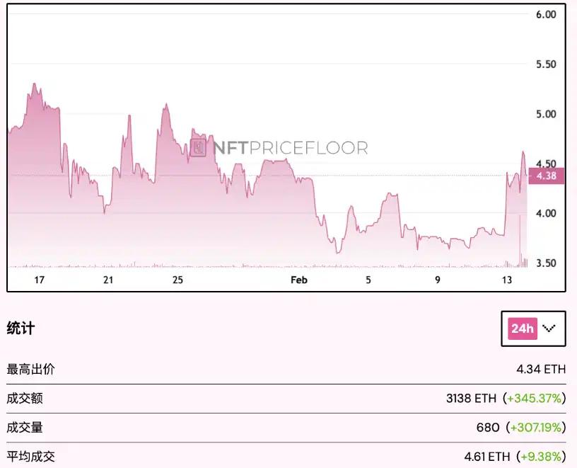 Affected by this news, Doodles has become the hottest NFT project in the past 24 hours. The NFT Price Floor website shows that Doodles' total trading volume has surged 345.37% to 3,138 ETH (about $8.47 million), and the trading volume has also surged 307.19% to 680 transactions. In addition, the average transaction price has risen 9.38% to 4.61 ETH, indicating a significant increase in market demand for Doodles.