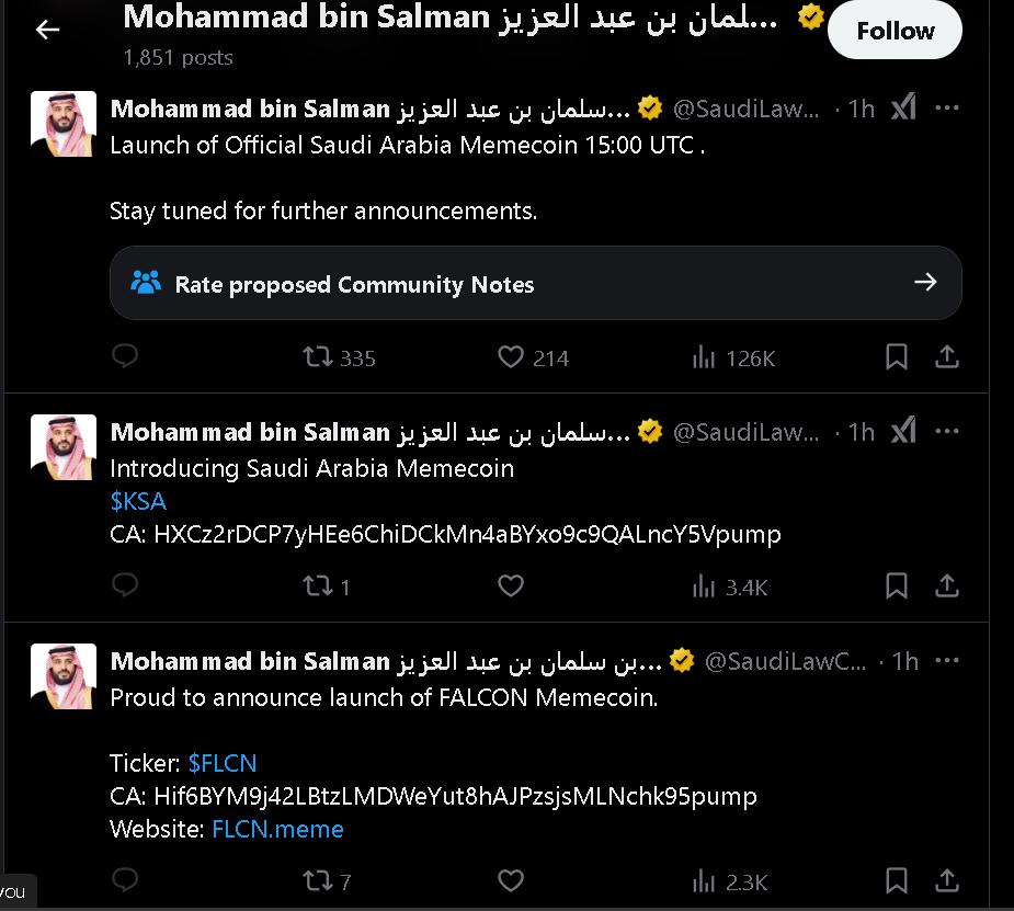 This cryptocurrency, called the "Official" Saudi Arabia memecoin (KSA), was announced on February 17 through a post on the social media platform X from the account "SaudiLawConf". However, this account was later confirmed to be fake, with no official connection to the Saudi Arabian government.