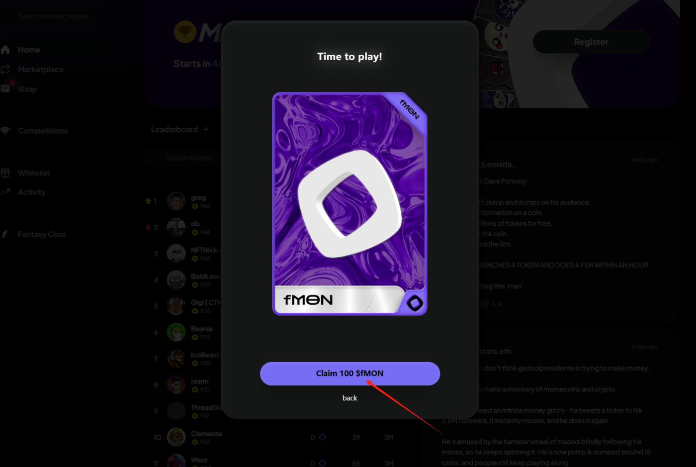 STEP 5. After successfully logging in, keep clicking "Continue" until you see "Claim 100 $fMON".