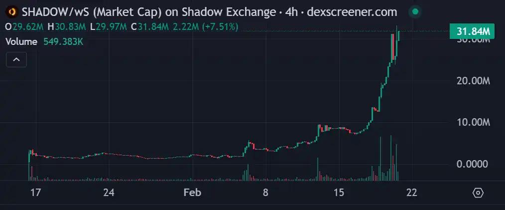 One of the hottest sectors in the Sonic ecosystem is the Shadow Exchange, whose native token $SHADOW has seen its market capitalization rise from around $5 million to the current $31.84 million, an increase of over 500% in a week. Currently, Shadow Exchange has a total of 457 liquidity pools, with a 7-day trading volume of $557 million and a single-day high of $171 million.