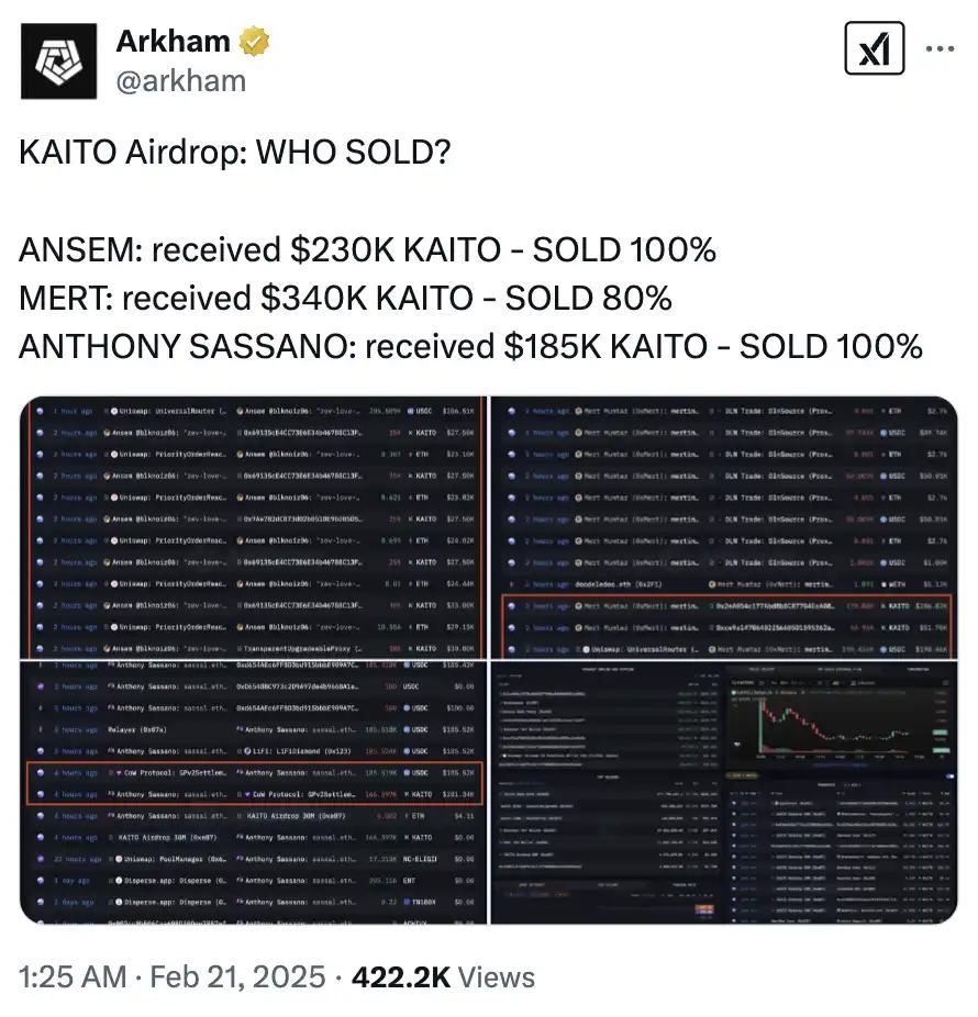 @yuyue_chris posted that "the reputation of top-tier and mid-to-low-tier KOLs is clearly polarized: the top-tier ones are generally not very satisfied; the mid-tier and low-tier ones are very grateful for $KAITO." @mdzzi shared a similar view, believing that "it's the victory of mid-tier KOLs, with the influence of top-tier KOLs being harvested."