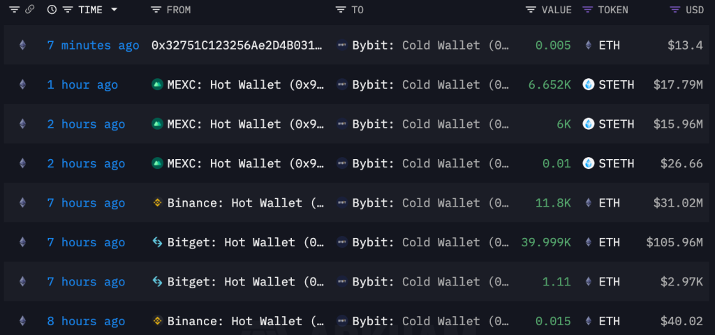 - Transferring the assets: Once they controlled the cold wallet, the hackers quickly transferred the funds to multiple unknown addresses and liquidated them through decentralized exchanges (DEXs).