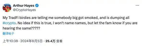 As the crypto king who appeared earlier than SBF, BitMEX co-founder Arthur Hayes posted on social media that through channels in the traditional financial field, he learned that a certain "big player" was liquidating their crypto assets.