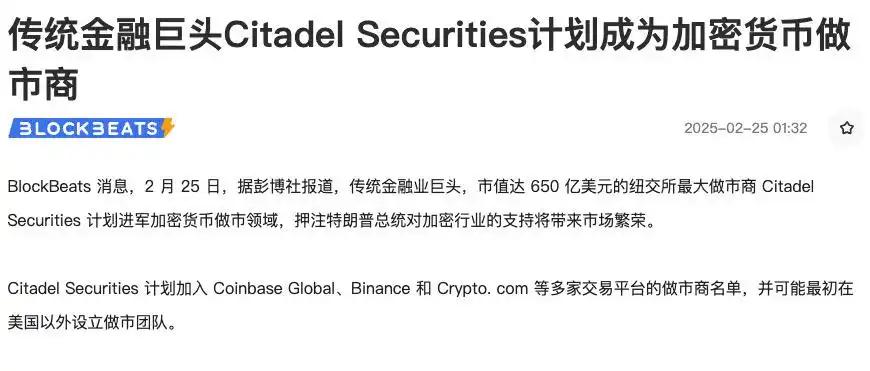 Yesterday, market maker Citadel Securities announced plans to enter the cryptocurrency market making business. Like a relay race of traditional financial giants, as Jump Crypto withdrew, Citadel Securities, also from a traditional finance background, chose to take over the baton of the crypto market.