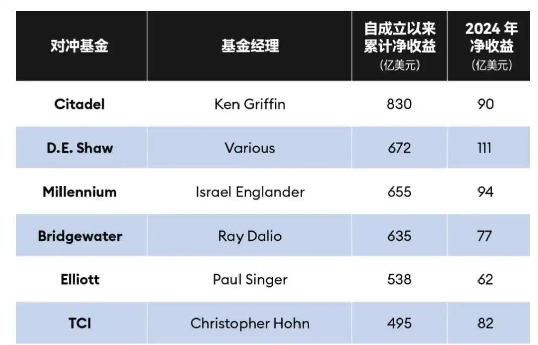 According to LCH Investments data, in 2022, the top 20 hedge fund companies generated a total of $22.4 billion in profits (after fees), with Citadel ranking first with $16 billion in profits in 2022, setting a new annual return record for a hedge fund company. The latest data shows that Citadel still ranks first in terms of net profit and valuation ranking among all global hedge funds since its inception, with Bridgewater Fund ranking fourth.